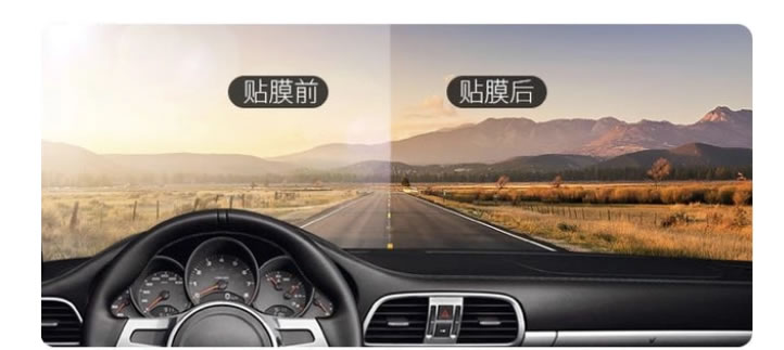 3、防眩光:强烈的阳光、夜晚行车时的远光灯、雨天起雾时玻璃看不清,那是因为你没有贴膜。优质的车窗膜能够有效防眩光、防蓝光,保证行车安全。